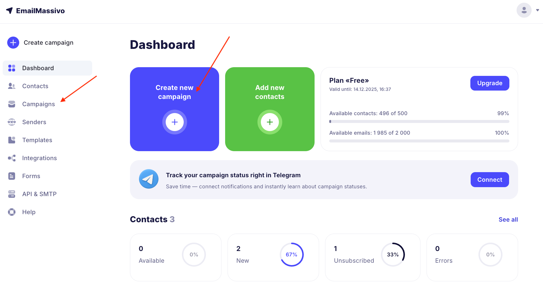 Enter the campaign name, select type "Regular Campaign" and click "Create Campaign".