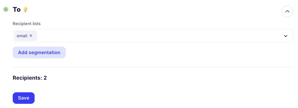 After selecting lists to whom you want to send the campaign, you will see the total number of recipients in these lists. Then click "Save".