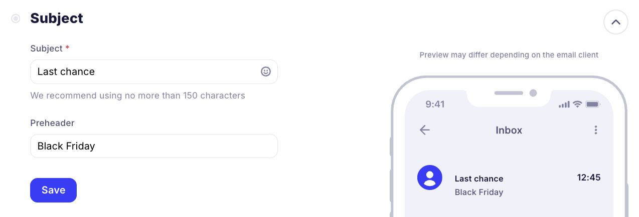 Email subject is the part of the message that subscribers see when they enter the "Inbox" folder. By the email subject, subscribers judge whether it's worth opening or not, so it should be catchy, informative, and brief.