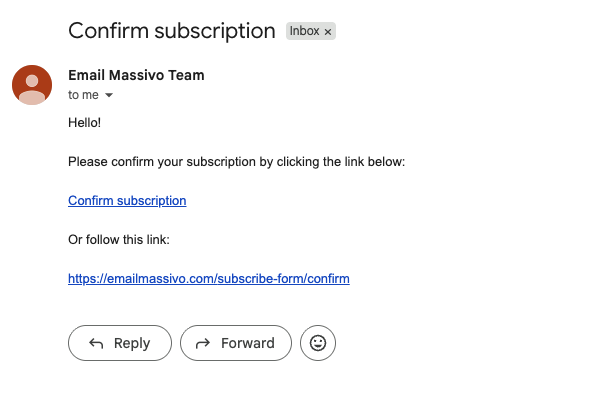 When subscribing, the user will receive an email asking them to confirm their email address. After confirming their email, the user will be added to the Contacts list in EmailMassivo.