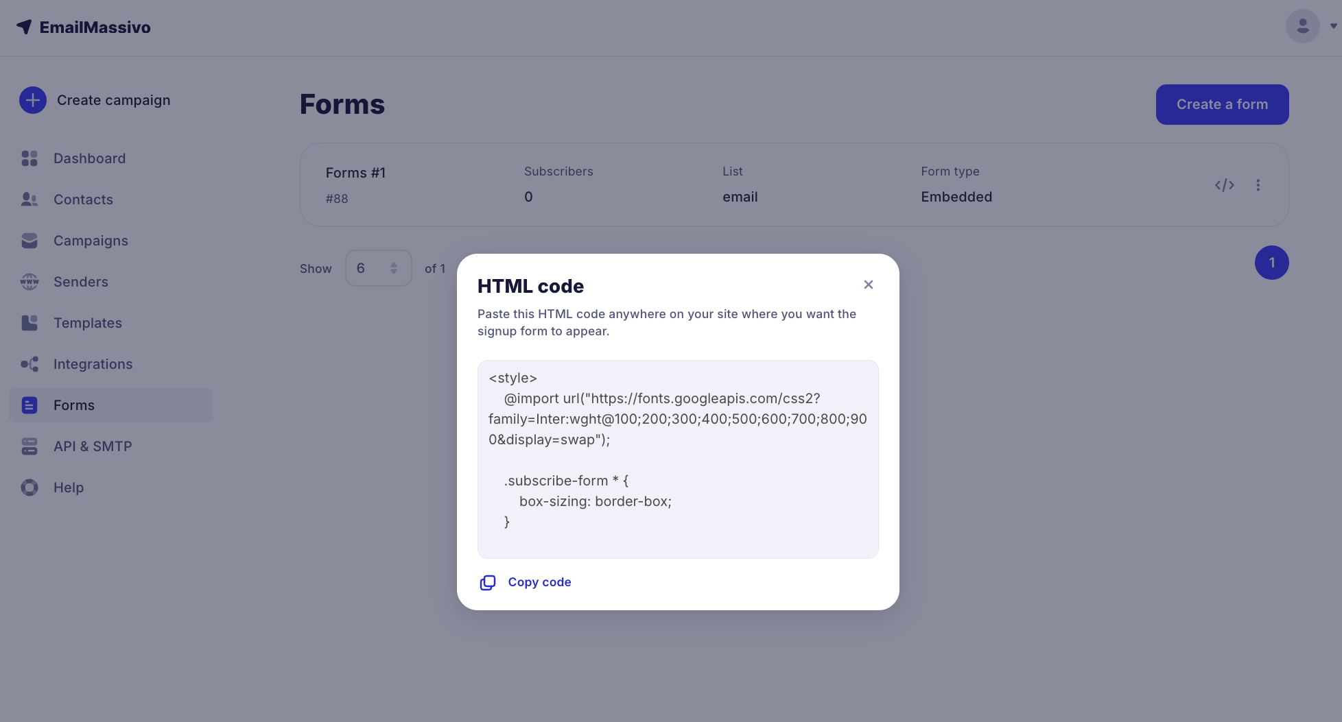 Done! Now the subscription form is created and you can place the HTML code anywhere on your website where you want to place the subscriber collection form.