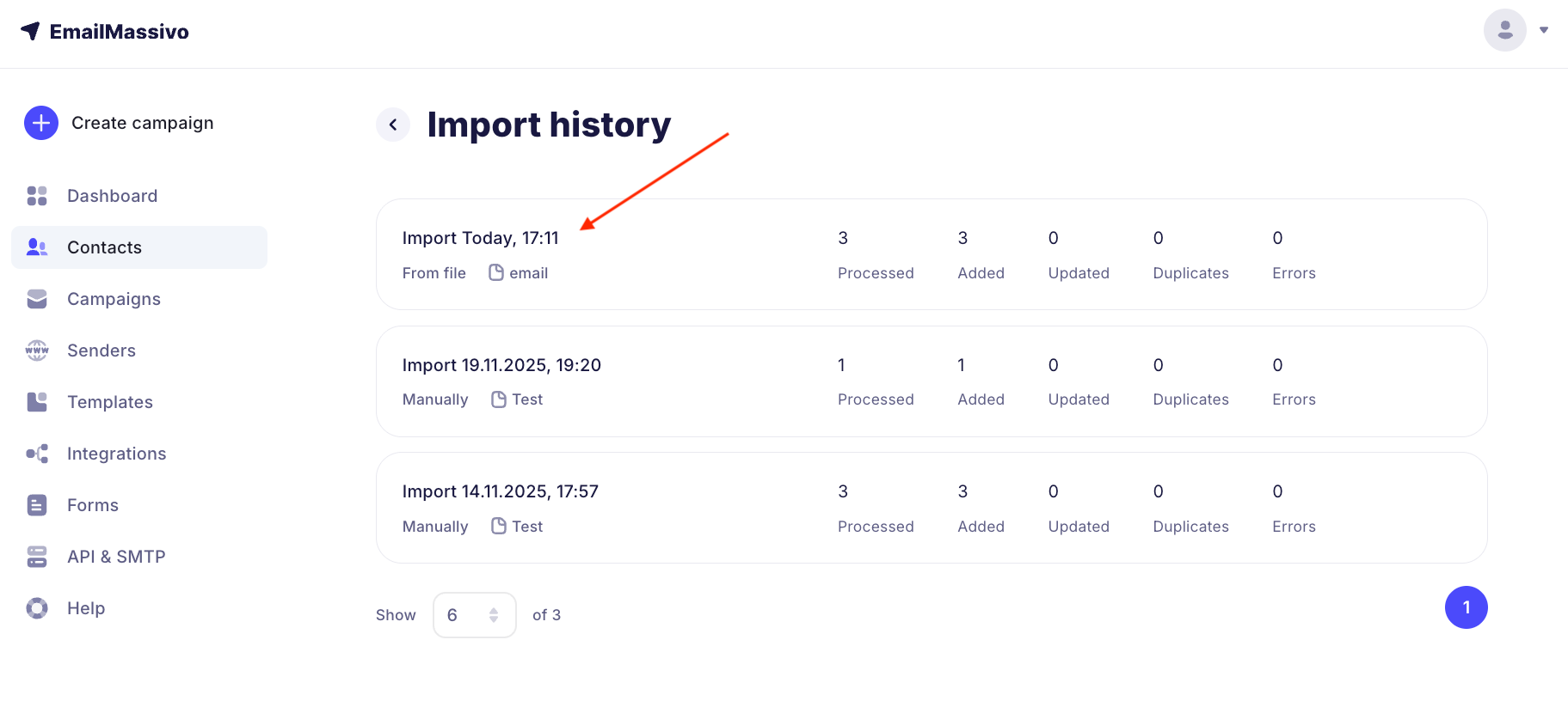 Check the history to make sure the database has been updated correctly, and proceed to creating a campaign.