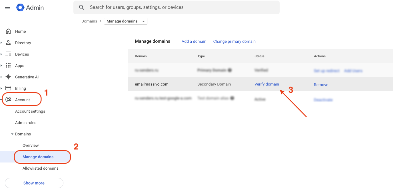 Click the "Verify" button. If your domain registrar cannot use the @ symbol in the domain or subdomain name, add a period at the end of the domain name.