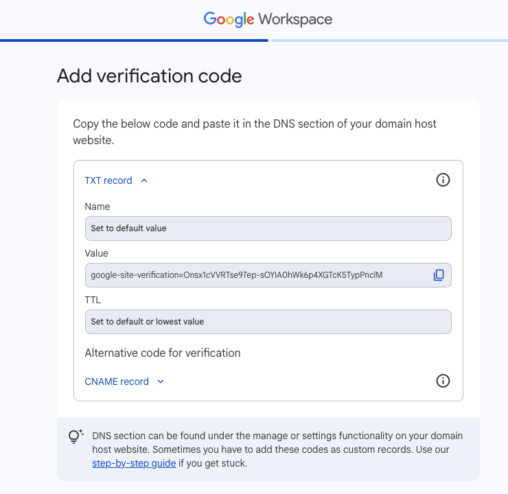 Attention! To add a TXT record, you need to have access to edit your domain's DNS records.