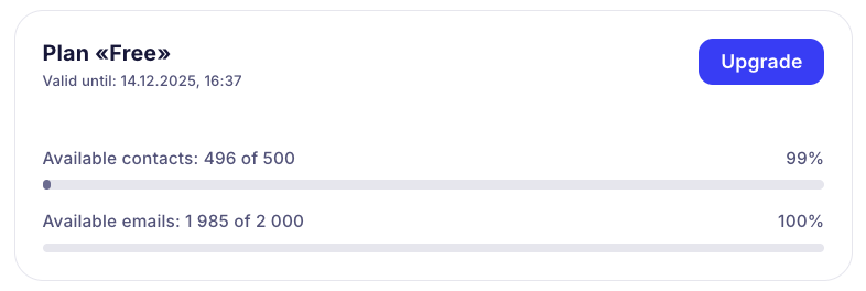 Contact balance is the number of addresses you can send emails to during the paid period. The limit is set by your selected plan.