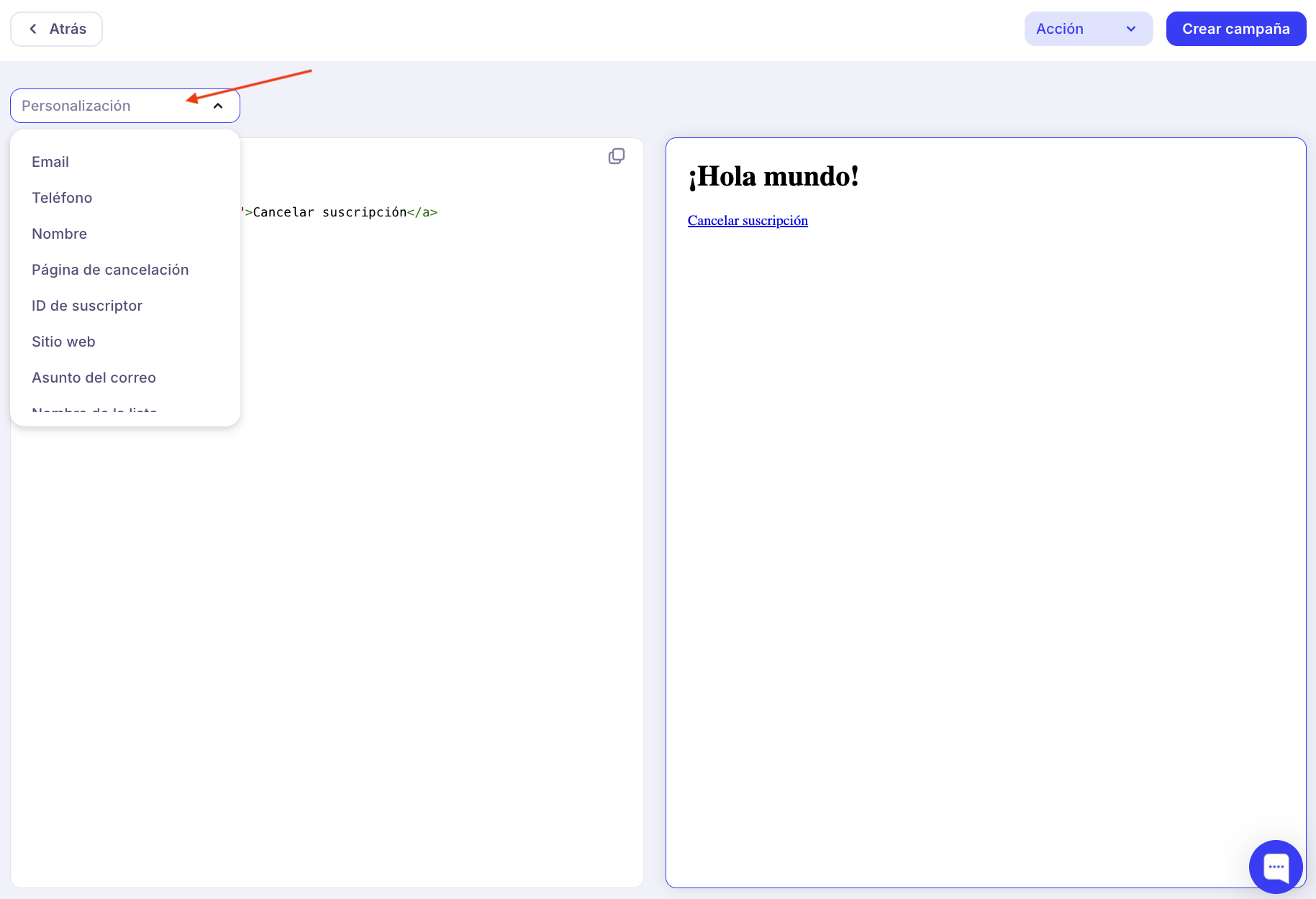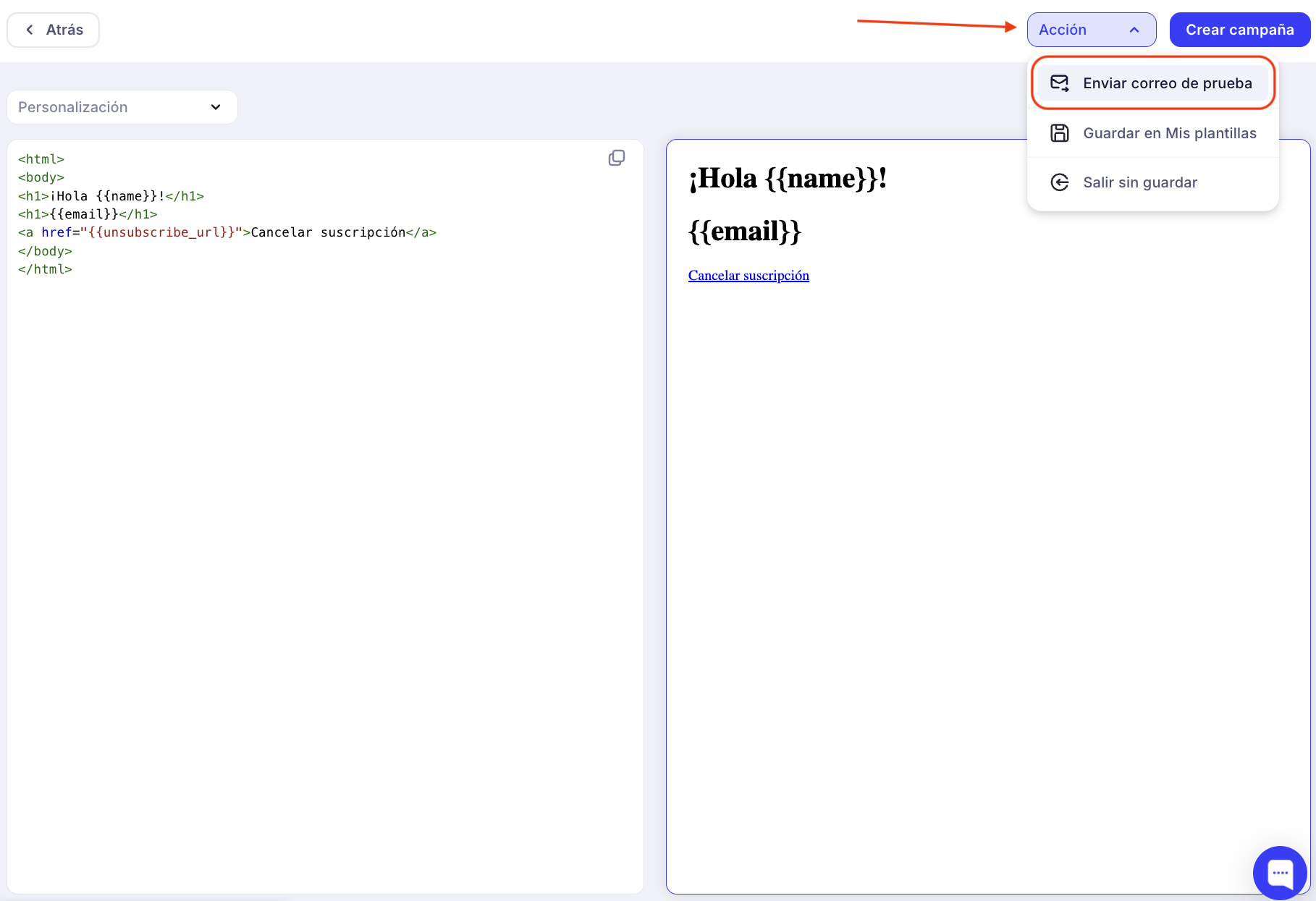 El mensaje, como el asunto del correo electrónico, puede ser personalizado agregando datos personales del cliente.