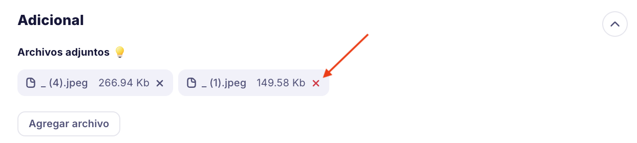 Puedes eliminar un archivo haciendo clic en la cruz: