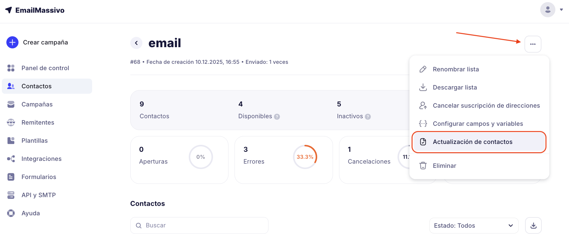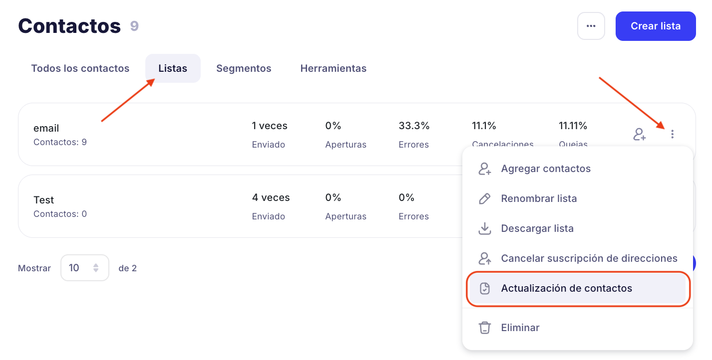 - Ve a la sección Contactos → Listas.