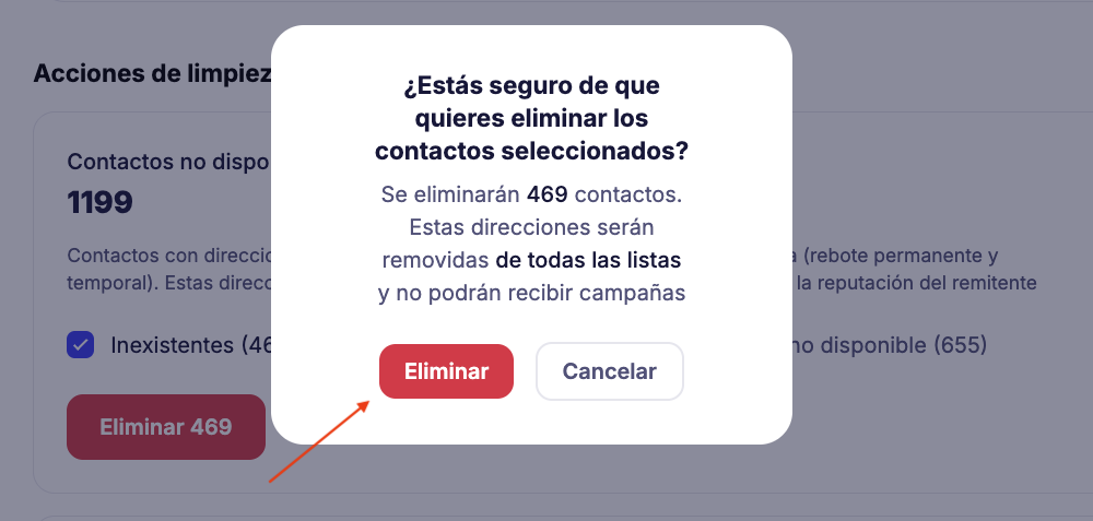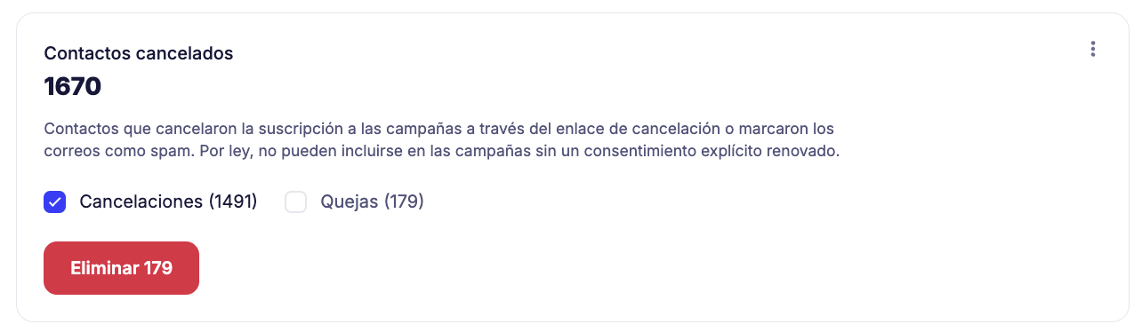 Los contactos eliminados desaparecerán de todas las listas y ya no recibirán tus correos electrónicos.