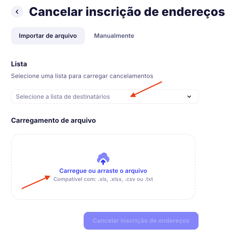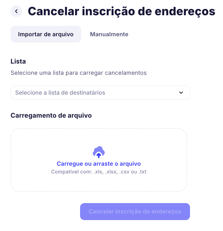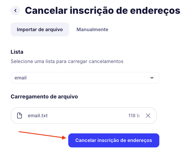 Quando você tiver carregado o arquivo e selecionado a lista, clique no botão "Descadastrar endereços":
