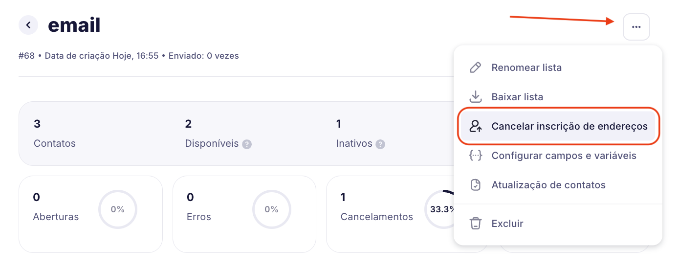 O descadastramento se aplica ao contato dentro de toda a conta. Se um contato está em múltiplas listas, para descadastrá-lo, é suficiente carregá-lo especificando qualquer uma dessas listas. Ou você pode criar uma lista separada onde pode armazenar todos os seus contatos descadastrados.