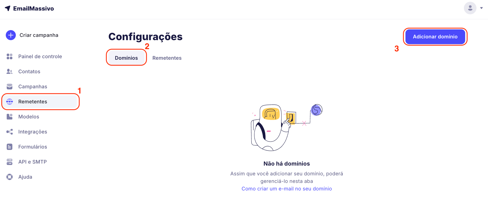 Não encontrou respostas para suas perguntas? Por favor, use o guia detalhado passo a passo para adicionar um domínio em nossa Base de Conhecimentos ou entre em contato com a equipe de suporte de usuários do EmailMassivo para obter ajuda.