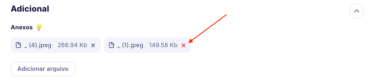 Você pode excluir um arquivo clicando no X: