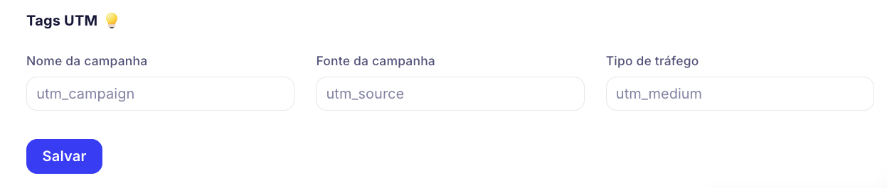 Exemplo de configuração de tags UTM:
