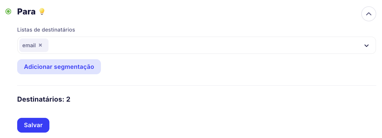 Depois de selecionar as listas para as quais você quer enviar a campanha, verá o número total de destinatários nessas listas. Em seguida, clique em "Salvar".